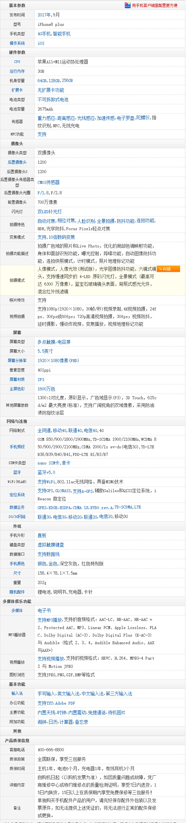 苹果8plus可以说是苹果公司比较早出来的手机型号了,有网友还想入手苹果8plus手机,不知道苹果8plus参数配置怎么样。下面小编就给大家详细介绍下苹果8plus参数配置情况供参考。