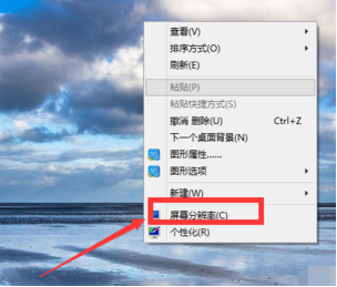 1、在自己的win10桌面的空白处点击右键,选择屏幕分辨率。