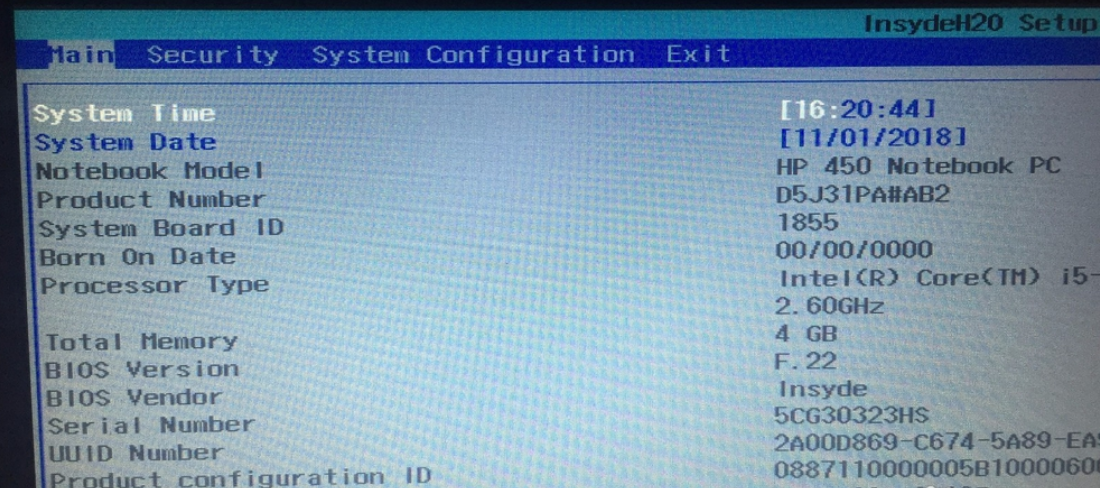 4、接着就会进入到bios的主界面,在最上边一排是菜单选项,这里选择system configuration选项,如图所示: