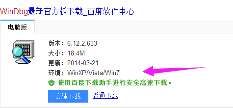 2、安装成功后,开始菜单,程序中找到并启动Windbg。