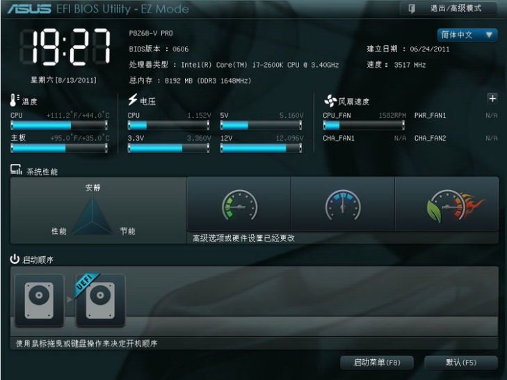 2、按 F7 即可进入高级模式页面。在这里分别是概要、AI Tweaker、高级、监控、启动和工具,默认是停留在概要界面。而概要界面下方涵盖的主要内容分别是:BIOS信息、BIOS版本、建立日期、EC版本、ME版本、CPU信息和内存信息、系统语言、系统日期等等我们可以通过方向上下左右键进行控制调节,可以设置系统语言。