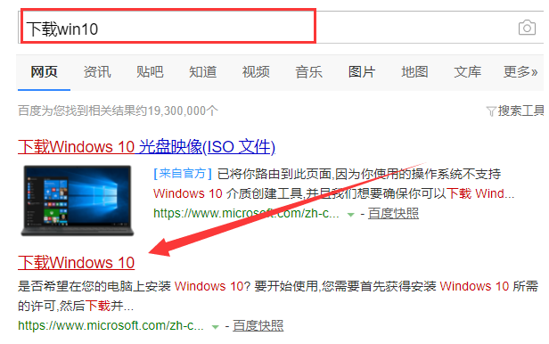 1,打开网页搜索引擎搜索“下载win10”点击下载win10链接进入官网。