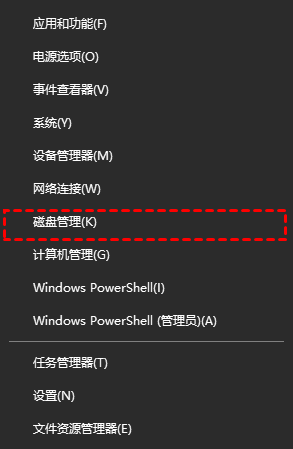 1、鼠标右击桌面左下角的开始按钮,然后选择“磁盘管理器”。