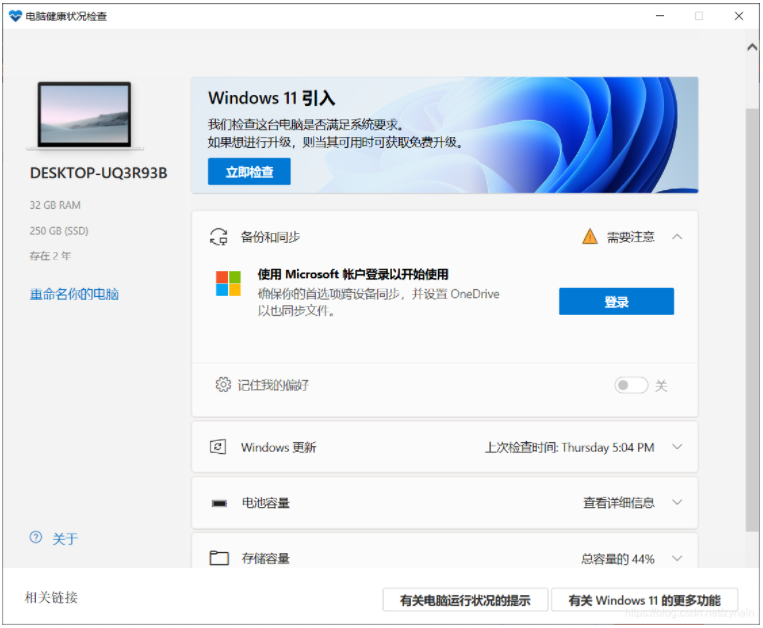 1、首先检查下电脑是否满足win11最低配置要求,可以通过windows官方提供工具检测(电脑健康状况检查)检查。