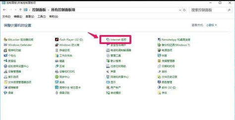 1.打开控制面板,左键双击:Internet选项,如图所示: