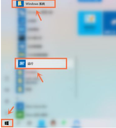 1.首先,我们点击桌面【Windows】图标,打开【Windows系统】下的【运行】或者按下键盘【win+r】键。如图所示: