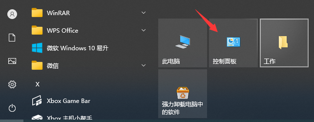 1.首先我们点击开始菜单,选择“控制面板”选项。