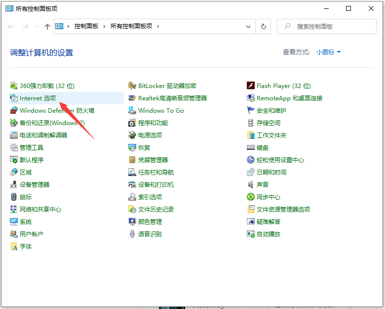 1、打开开始菜单,选择控制面板打开,左键双击:Internet选项。
