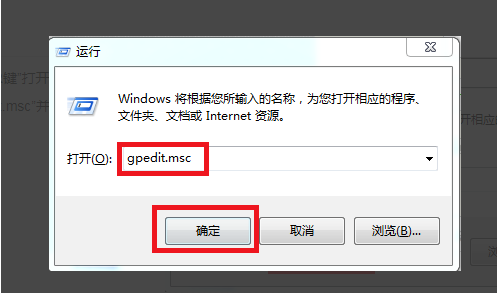 1、同时按下“windows键”+“R键”打开电脑中的运行,在里面输入“gpedit.msc”并点击确定。
