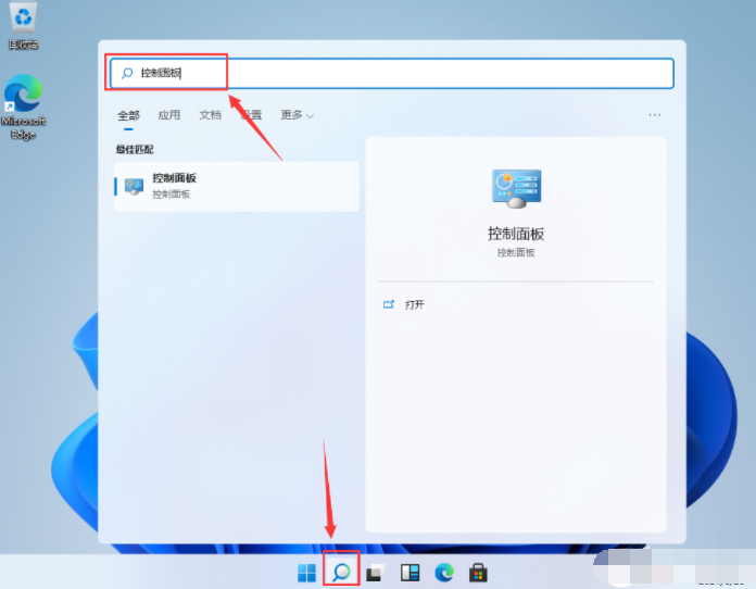 1、直接在win11系统界面下方的搜索框中搜索“控制面板”,就可以直接打开。