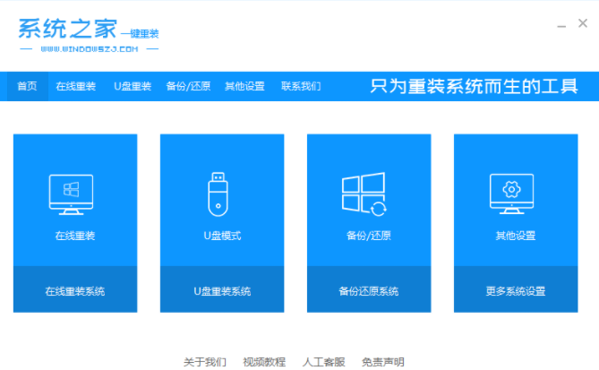 1.搜寻下载家庭一键重新安装系统工具(www.windows7en.com),并在打开软件后选择在线重新安装。