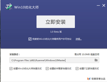 1.下载win10优化大师点击安装。