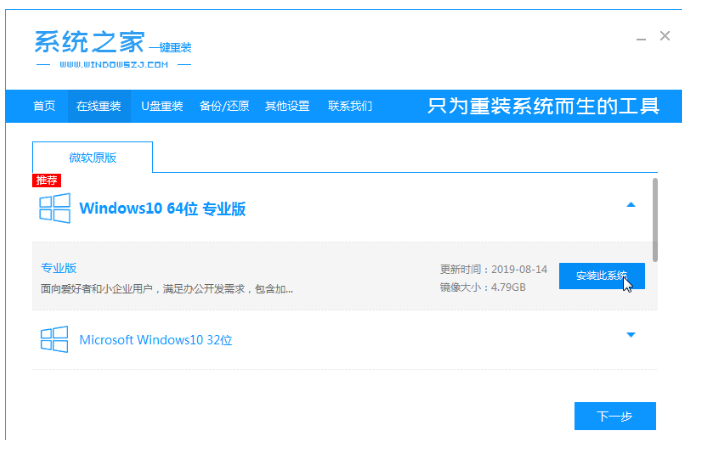 1.浏览器搜索系统之家一键重装系统,下载系统之家一键重装系统软件,选择win10系统。