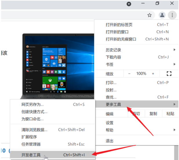 1、首先在谷歌浏览器上打开微软官方的下载地址:https://www.microsoft.com/zh-cn/software-download/windows10ISO/然后点击浏览器右上角三点按钮,依次点击更多工具-开发者工具。