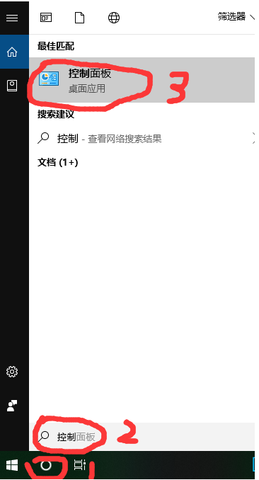 1.首先点击桌面左小角的小圆,在控制面板中搜索,然后点击上面的控制面板。