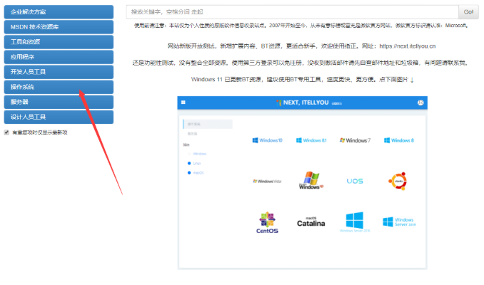 1、我们进入到msdn的官网当中,点击左侧的【操作系统】栏目,进入到下载的页面。