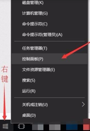11、在win10 系统的开始菜单(左下角)右击,选择“控制面板”。