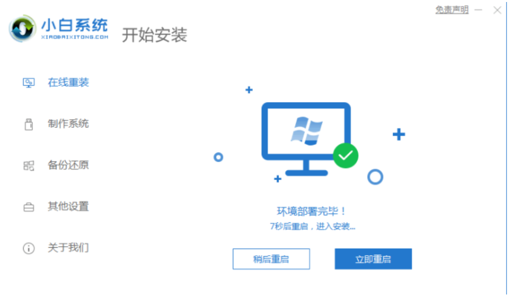 3.安装前,点电脑部署环境,部署环境完成后,我们将直接重新启动电脑。