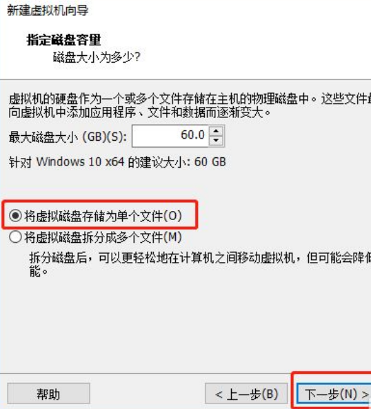 6、选择【将虚拟机磁盘存储为单个文件】,此项可选。然后点击【下一步】按钮。