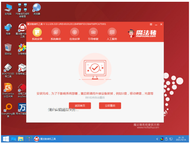 4、下载完系统镜像后,环境部署完毕后,等待电脑重启。