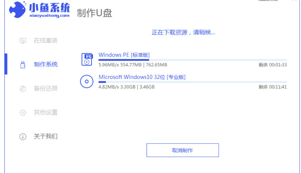 3.开始制作pe系统和下载镜像文件,我们需等待下载完成。