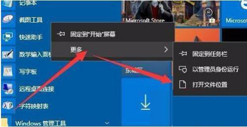 2.在配件菜单项中寻找截图工具菜单项,鼠标右键单击菜单项,在弹出菜单栏中单击大量/打开文件部分菜单项。
