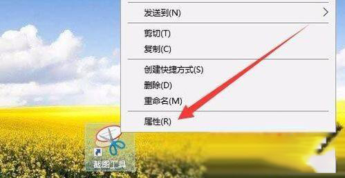 4.在桌面上看到截图工具的标志。然后右键单击鼠标,在弹出菜单中选择特征菜单项。
