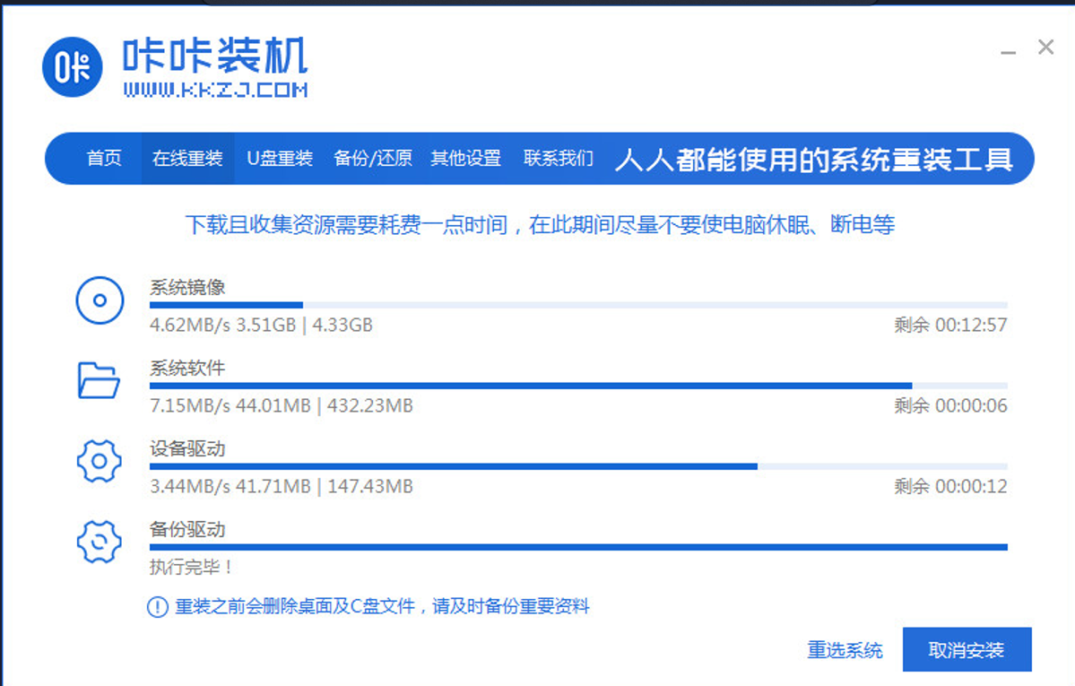 2、勾选要按装的应用软件,点击下一步,等待系统下载镜像,设备驱动等资料。