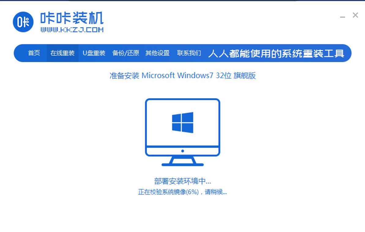 1、下载安装咔咔装机工具,选择在线重装,选择要安装的系统版本,点击下一步。