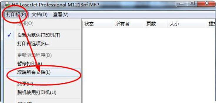 2、或者我们可以选择关闭所有打印机的任务,把所有任务取消之后再重启打印机。
