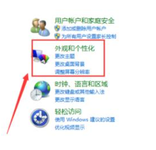 3、在“控制面板”中找到“外观和个性化”并点击进行下一步操作。