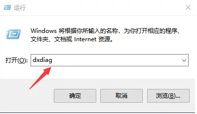 1.使用快捷键win+R,输入 dxdiag 点击确定。