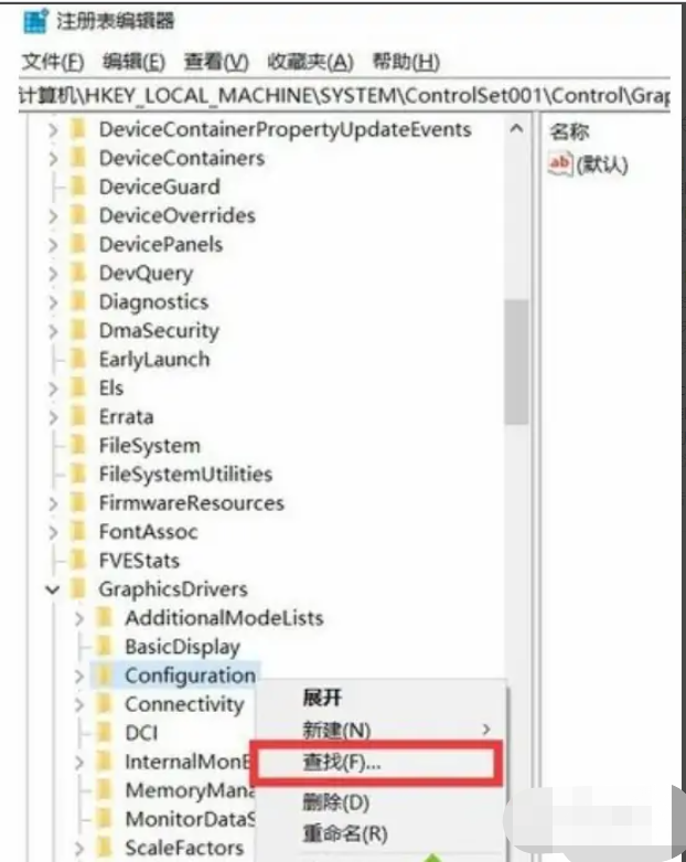 5、在configuration右键点击选择查找;