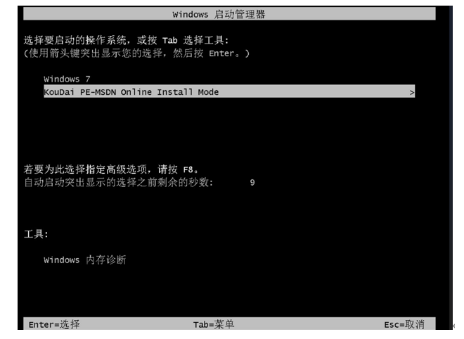 6、重启后,选择第二个选项,按回车键。