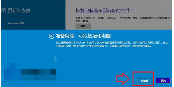 4.在弹出的初始化电脑窗口中,单击“下一步”。
