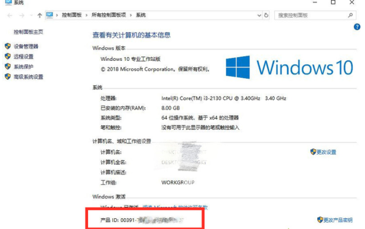 2、在"系统"界面就可以看到下方"产品ID",这就是win10系统激活码。