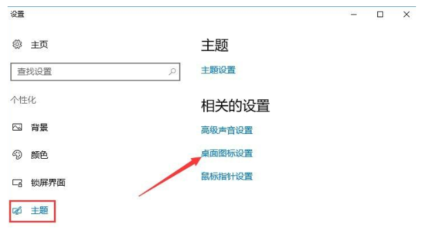 2、在打开的页面中,点击左侧的“主题”功能,然后点击右侧的“桌面图标设置”。