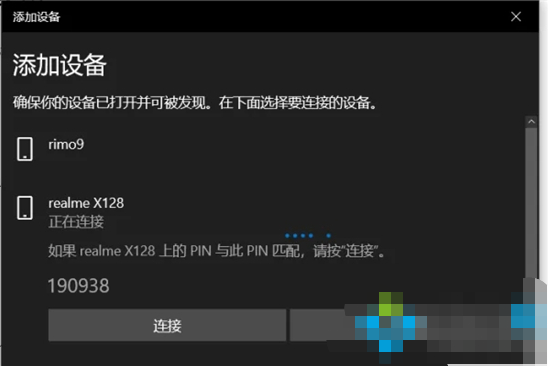 6.核实PIN码,点击【连接】,配对成功。