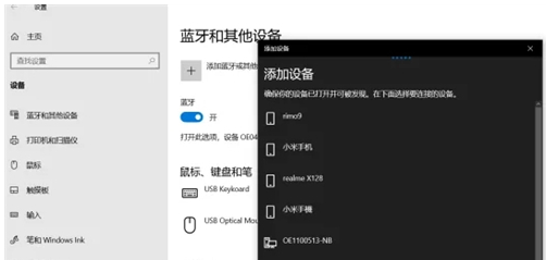 4.点击添加设备,即可搜索到周围的可连接的蓝牙设备;