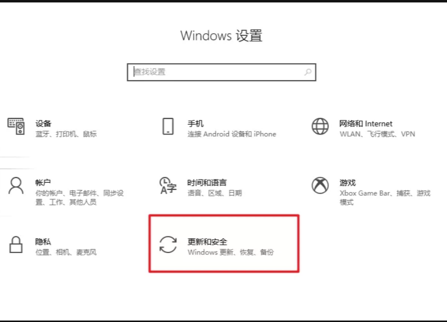2、在“设置面板”界面中,找到并鼠标点击“更新和安全”——“激活”。