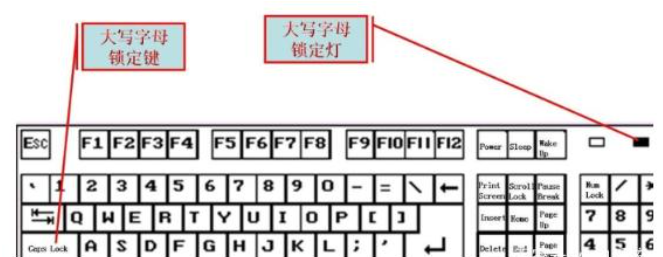 6.Caps Lock叫大写字母锁定键,按一下,右侧第二个按钮会亮起来,这时候只能打出大写字母。再按一下,灯灭了,这时可以打小写字母。
