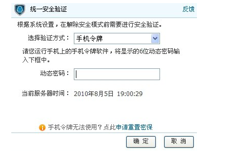 b)点击手机令牌,弹出手机令牌验证框: