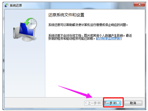 4、退回第三步界面,选择“系统还原”。