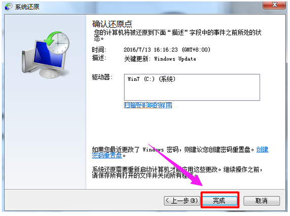 6、如果最近设置过账户密码,那么最好重置一下,若没有,则选择完成。