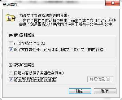 3.勾选加密内容以保护数据,完成后单击确定。