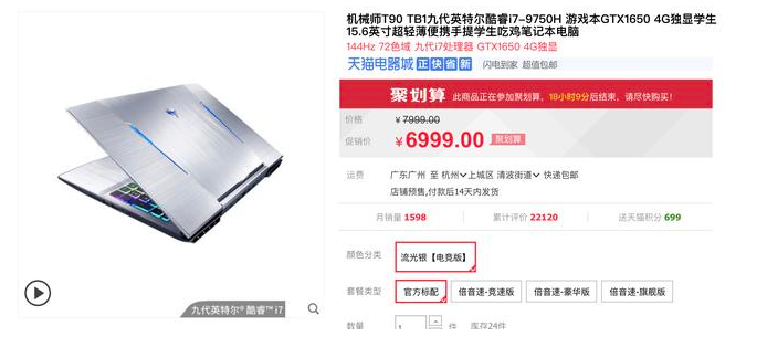 推荐理由:最后要来推荐的这款也是在价格表现上非常出众的,仅需6000多元能买到i7-9750+144Hz的本子,还是双硬盘,这性价比真的是让人吃惊。机械师T90是主打轻薄游戏本,采用高端处理器+中档独显的组合,GTX1650的性能正好在GTX1050Ti和GTX1060之间,比GTX1050Ti大约高23%。在配合上144Hz的显示之后,整体的游戏体验也变得极佳,作为游戏本也完全不逊于用台式机。最后建议一下,如果真的要购买该机型,可考虑加根8GB内存会更好。