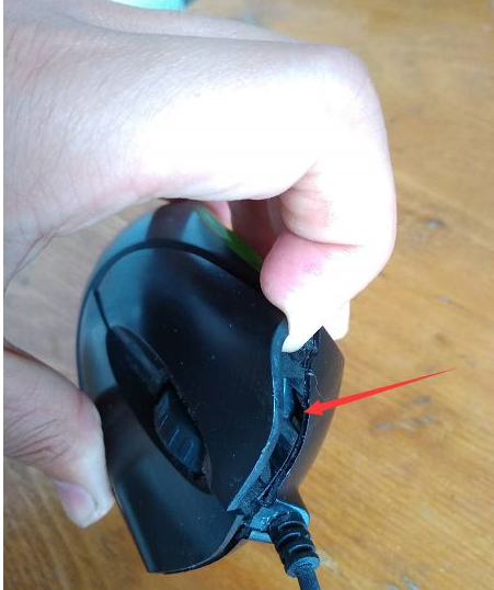1.首先用手抠开鼠标左右键,可以看到有一个凹陷的卡扣。