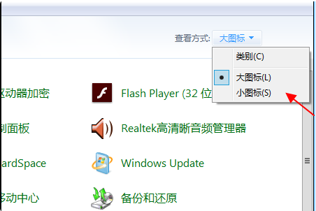 4.然后在弹出来的窗口中点击打开右上角的“查看方式” ,选择“大图标”选项。