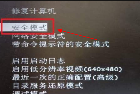2.然后在弹出来的电脑高级选项界面中,选择“安全模式”,按下“enter”确认。