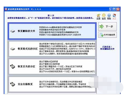 超级硬盘数据恢复软件的界面很朴实,是向导式的界面,操作说明写的比较详细,简练、实用。虽然不想一些软件的界面那么酷,但用起来很顺手。